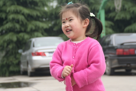 在准备出去户外活动的时候,涵涵被宸宸热情的拥抱给吓坏了---涵涵被吓哭了。悦悦看见了,过去轻轻的抱住涵涵安慰,然后悦悦从身上拿出一张纸,一边给涵涵擦眼泪一边说:好了涵涵,不哭了,我帮你把眼泪擦干净了!(那种感觉好温馨哦, 此时的悦悦真像一位大姐姐!)出去之后,老师请小朋友找找草地上漂亮的小树叶,很快悦悦就找到了一片,悦悦开心的拿到老师的面前说:我找到了一片小树叶,它是黄颜色的,像桔子一样!过了一会儿,悦悦又找到了一片褐色的小树叶,悦悦撕下树叶的衣角拿给老师:老师请你吃‘巧克力’!户外活动回来的时候,嘉嘉因为被风吹到了(嘉嘉怕风),回来的时候哭了一会儿,悦悦看见了说:嘉嘉的眼泪像下雨一样,啪哒,啪哒的!(悦悦的想象力还真丰富!)吃完午饭悦悦到游戏室里和大家一起玩起了‘开汽车’的游戏,在倒车的时候,大越越用力过猛把喜儿的手给夹到了,喜儿哭了,老师请大越越跟喜儿道歉,大越越没说,悦悦走到喜儿的面前说:喜儿,对不起!(既然大越越不愿意说,那我就帮他说吧,反正我们是一家人!呵呵呵.......)