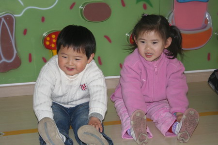 吃点心的时候悦悦不停地和阳阳交流着:“好东西要分享!”悦悦边对阳阳说着还不停地傻笑着点着头。两个丫头一人吃了一块饼干后就跑到游戏室里玩去了,老师见两丫头吃的不多,便喊到:“阳阳悦悦过来帮忙再吃掉点饼干好吗?”悦悦一听老师这话就答道:“我跟阳阳已经分过享了!”“那你们再来分享一次好吗?”一听老师这话,悦悦顺手拽起阳阳就往外跑,悦悦还跟阳阳商量着:“阳阳,我们再分一次享好吗?”上课之前老师请小朋友轮流上来表演一个节目,轮到悦悦的时候,悦悦唱了一首‘丢手绢’。悦悦刚上来的时候还有些不好意思,大越越看见了,在悦悦唱完第一句的时候上来给悦悦伴舞,这时悦悦的胆量就大了一些,就连声音也打了一些。(悦悦还挺信任大越越这个小哥哥的嘛!)中午起床的时候,悦悦指着大然然的床说:为什么他只垫一层床垫呀?老师不答反问:悦悦垫几层床垫?悦悦抬起自己床上的席梦思看看,然后告诉老师:一床。老师掀开被子问:几床呀?悦悦看见被子下面的垫被之后,又数了一下说:两层床垫?师:悦悦为什么要垫两层床垫呀?悦悦很不好意思地说:会尿尿的!呵呵呵,老师爆笑…