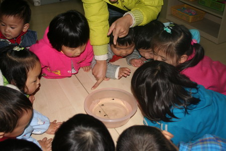 1、跟着老师观察小蝌蚪呢