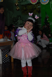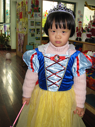 。一般凭“慈悲为怀、善哉善哉”的悦爸去处理,是要急得冒汗的,俺说了几句“动之以情、晓之以理”的安慰话后,丫头情绪明显有了好转。和小朋友的第一个合唱节目结束以后,就明显“小雨转阴——阴转多云——多云转晴”了!第一组PP:化妆舞会(偶很土,平生第一次参加化妆舞会,还是跟着我闺女开的眼)娃娃们的爸爸妈妈都是神人,一个个娃娃装点的是神气活现: