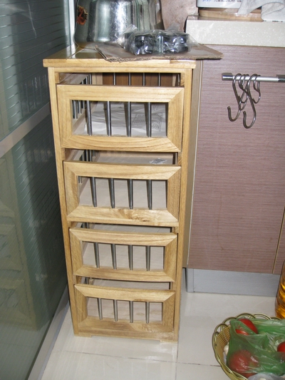 首先,要忠心感谢刘喜儿娘,在茫茫淘宝中,居然就能发现这么个好玩意——菜橱。这一重大发现解决了厨房里大蒜、大葱、胡萝卜、西红柿、包菜满地滚的状态,目前,每菜一个包间——各就各位,干干净净。