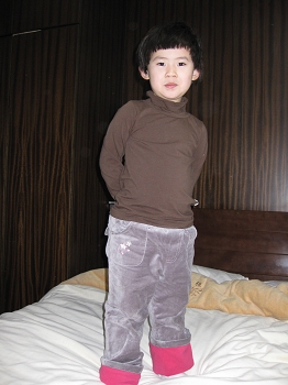 上两张蛮搞笑的PP,丫头临睡前在臭美: