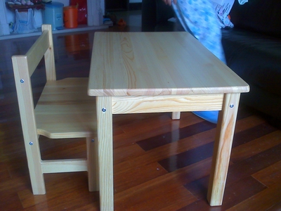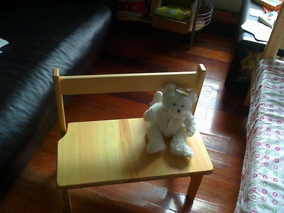 顺便的收获之一:一个小桌和一个小凳,很光洁,很扎实!(以前买的好孩子的餐桌椅已经给丫头折磨的快散架了)