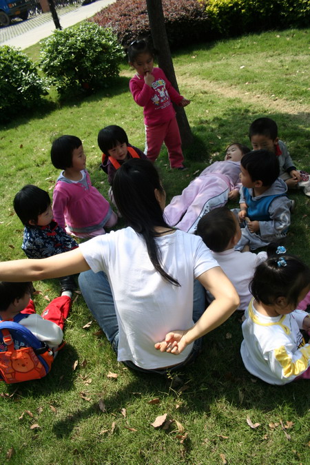 上午的自由活动中,大家都在游戏室里玩,小房子里的桌脚被老师拿去“洗澡”了,悦悦发现后,不停的问小朋友:“你有没有看到我的矿泉水呀?”(大家都把桌脚当成矿泉水瓶了…)越越回答:“我不知道。”阳阳说:“别着急,我帮你找一找。”问妞妞,妞妞支支吾吾半天没有说出个所以然来,小手还不停地比划着,最后终于像是想起了什么似的:“它、、它飞走了、、、”(二妞的想象力不错哈)悦悦对妞妞的话信以为真,不停地和阳阳说:“矿泉水飞走了。”上楼睡觉时,悦悦在床上脱衣服,突然想起了什么,就问老师:“我的大越呢?”“大越越还在楼下呢!马上就上来了!”“哦,我想等大越来了一起睡!”呵,悦悦对越越的依恋又显现出来咯…中午起床的时候,悦悦穿好衣服要等喜儿一起下楼。当喜儿穿衣服的时候,悦悦发现喜儿的后肩上有一颗痣,于是悦悦问喜儿:“喜儿,你那是什么呀?”喜儿:“那是撞的!”悦悦指着墙上的“洞”问:“那是你撞的吗?”喜儿:“不是!”悦悦疑惑:“那会是谁撞的呢?”(实情:那是然然没睡着时用小手抠的,不过那不是“洞”,只是掉了一层涂料)。周五,幼儿园的女孩好多都穿上了小裙子,户外活动的时候,悦悦把自己的裙子转了起来,引来了其她的小朋友前来比美,大家都转起了裙子,都说自己的裙子最漂亮。(看来爱美的确是女孩的天性!)
